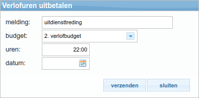 - Kies bij 'budget' uit welk verlofbudget de uren uitbetaald worden.