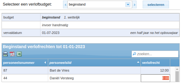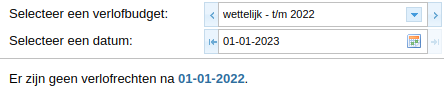 - selecteer een verlofbudget, bijvoorbeeld wettelijk t/m ...