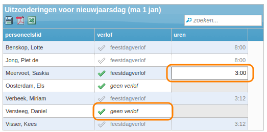 - Klik in de kolom met 'uren' om het aantal feestdaguren aan te passen.