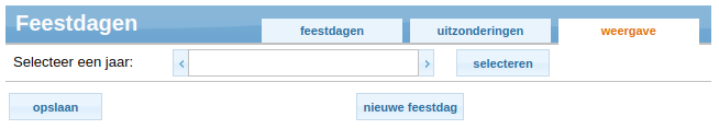 - Ga naar de pagina 'feestdagen en klik op het 3e tabblad 'weergave'.