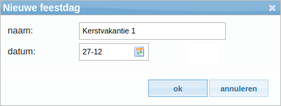 Klik op 'nieuwe feestdag'. Voer hier de naam en datum in en klik op 'ok':