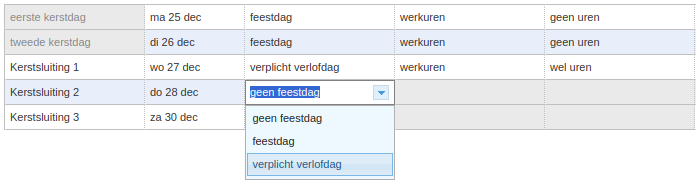 Geef aan dat de sluitingsdag (bijvoorbeeld) een verplichte verlofdag is: