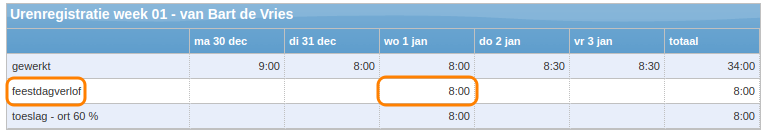 Via de pagina 'urenregistratie' kan een personeelslid achteraf bekijken hoeveel feestdagverlof er berekend is. In het hoofdaccount is dit tevens zichtbaar onder 'urenregistratie' - tabblad 'publicaties'.