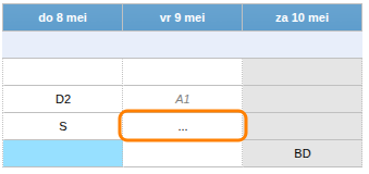 In het week- of maandrooster kan er om deze redenen geen code worden getoond, zodat direct zichtbaar is om welke dienst het gaat. Klik op de puntjes om te zien welke diensten er in het vakje staan. Het personeelslid ziet de taak/taken en tijden wel doorkomen in het persoonlijke rooster in de app.