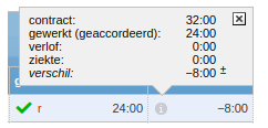 Via 'urencontrole' is vervolgens een '±'-symbool zichtbaar dat aangeeft dat deze minuren zijn ontstaan als gevolg van 'opname plusuren' (±). Klik daarvoor op de uren in de kolom 'verschil'. Voorbeeld: