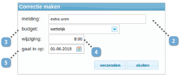 - Geef bij 'budget' aan op welk verlofbudget de correctie wordt gedaan.