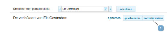 - Klik hier om voor het geselecteerde personeelslid een correctie te maken op een verlofbudget.