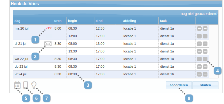- Klik op 'accorderen' om de tijden te accorderen.